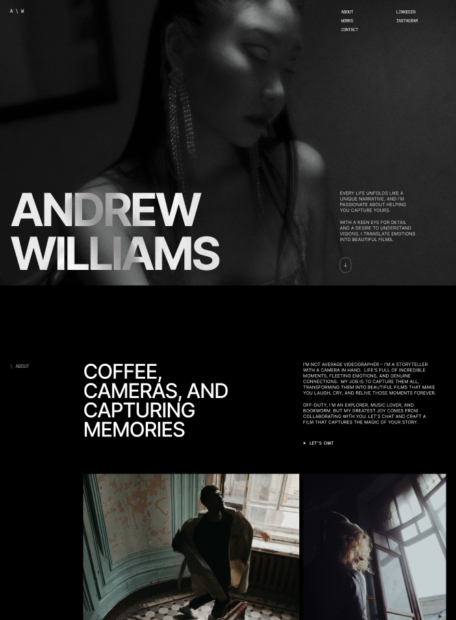 We crafted a compelling videographer portfolio website that emphasizes visual content, making videos the focal point. The design ensures high-quality displays and an intuitive interface to showcase work effectively. Features to convert viewers into clients include seamless video presentations, captivating visuals, detailed descriptions, and clear calls-to-action. This website empowers videographers to stand out, attract dream projects, and reflect their passion and talent.