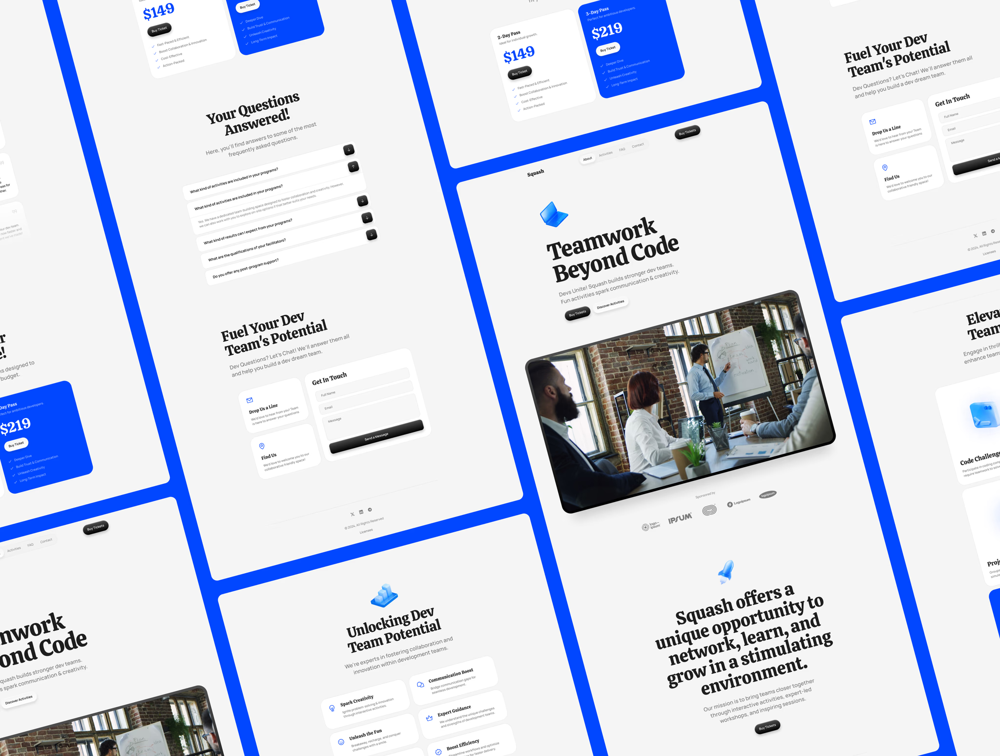 We created Squash as a dynamic website solution tailored to highlight development team-building programs. Squash offers a modern, fully customizable design that enables a compelling brand narrative, creating a visually engaging experience. The website emphasizes the unique benefits of team-building initiatives, showcasing how they enhance creativity, collaboration, and overall team success. With a focus on clear and compelling content, Squash helps attract clients seeking to unlock their teams' potential, establishing a thriving online presence that resonates with the target audience.